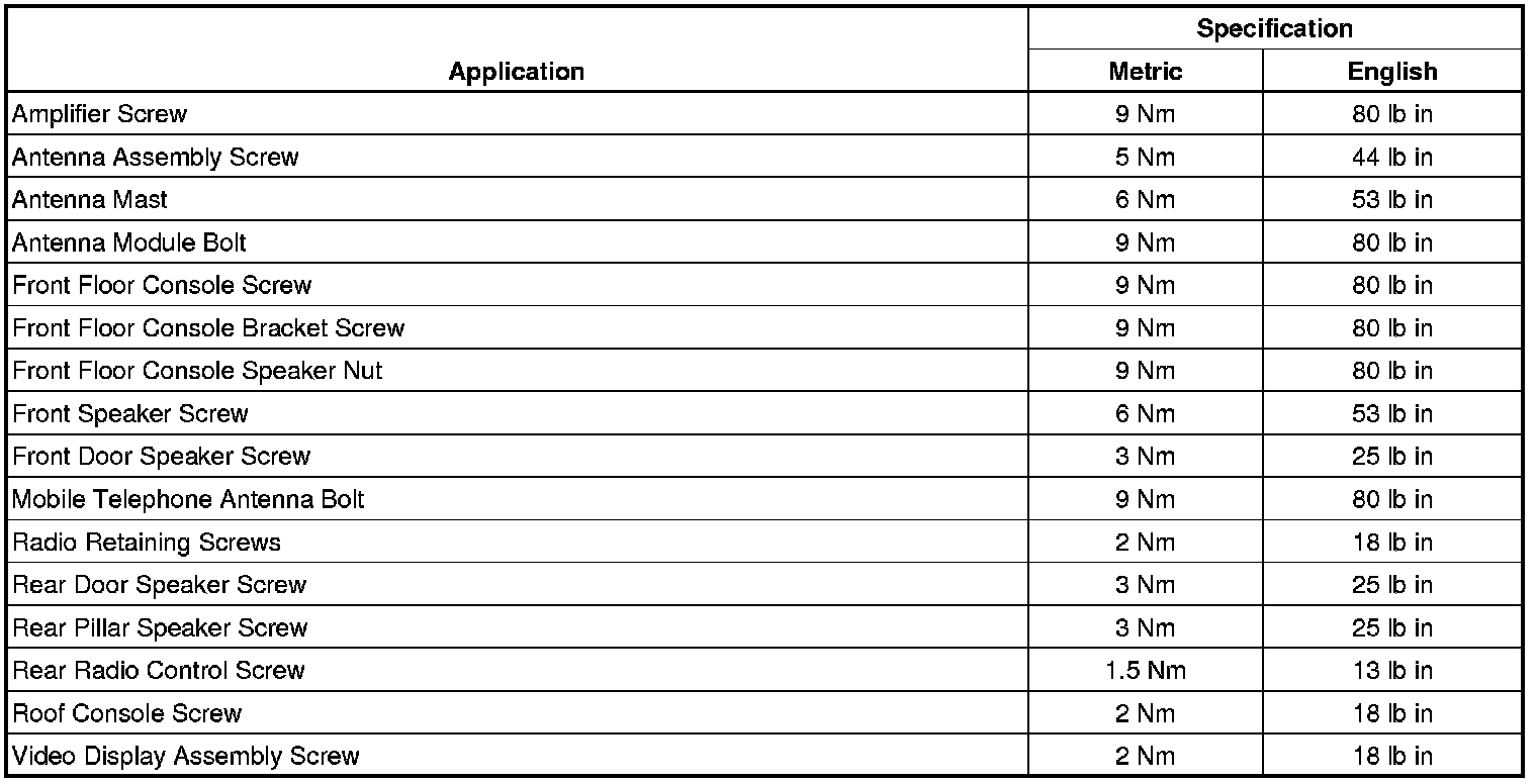 Fastener Tightening Specifications