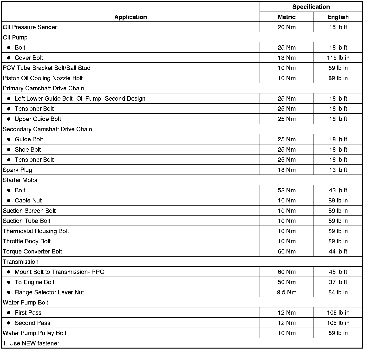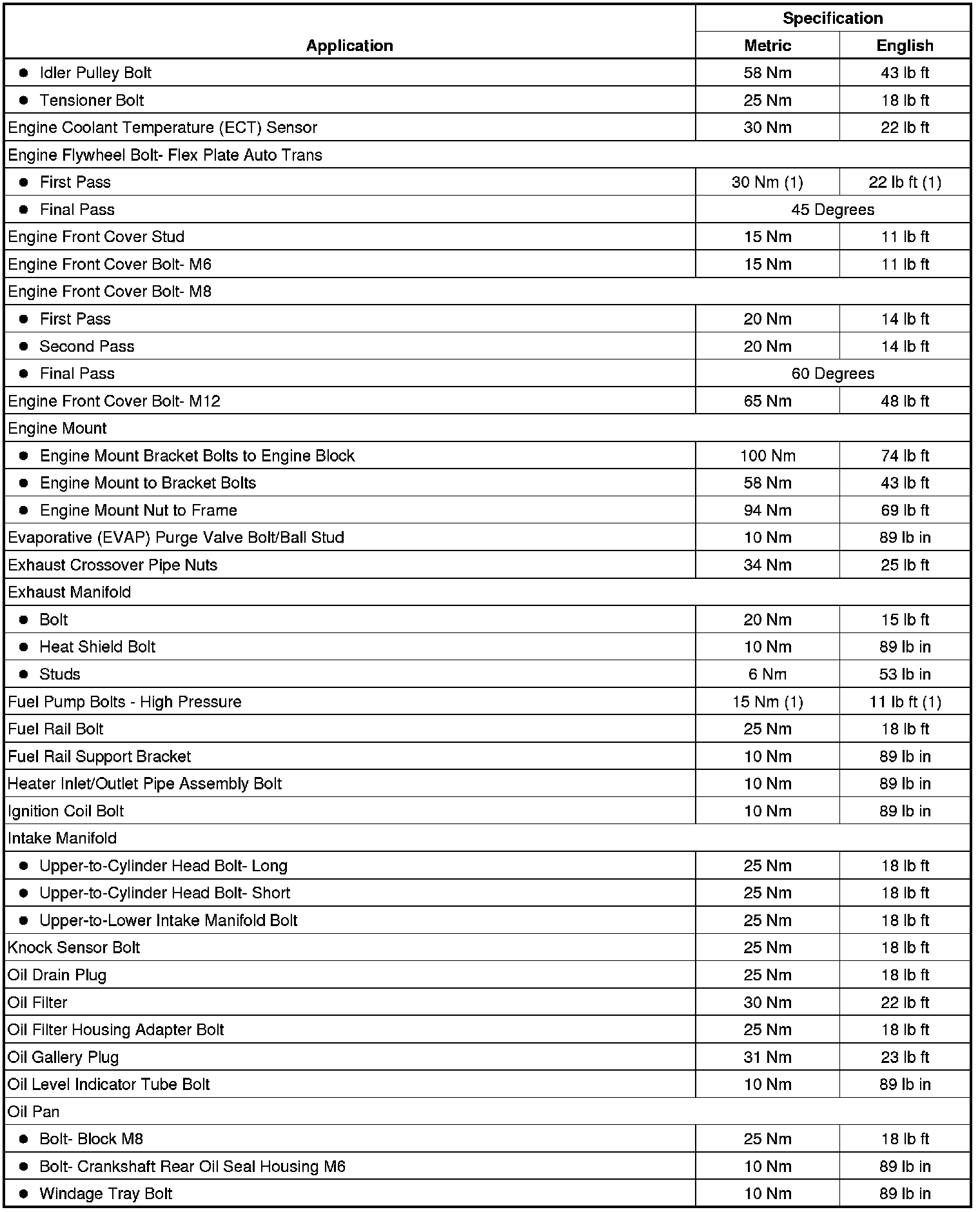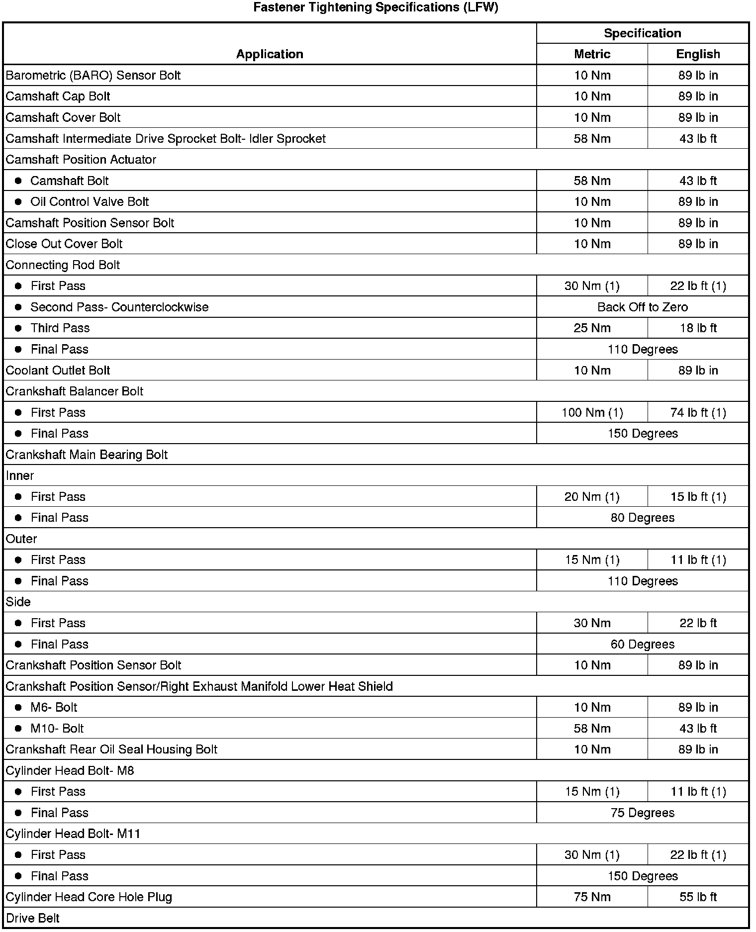 Fastener Tightening Specifications (LFW)