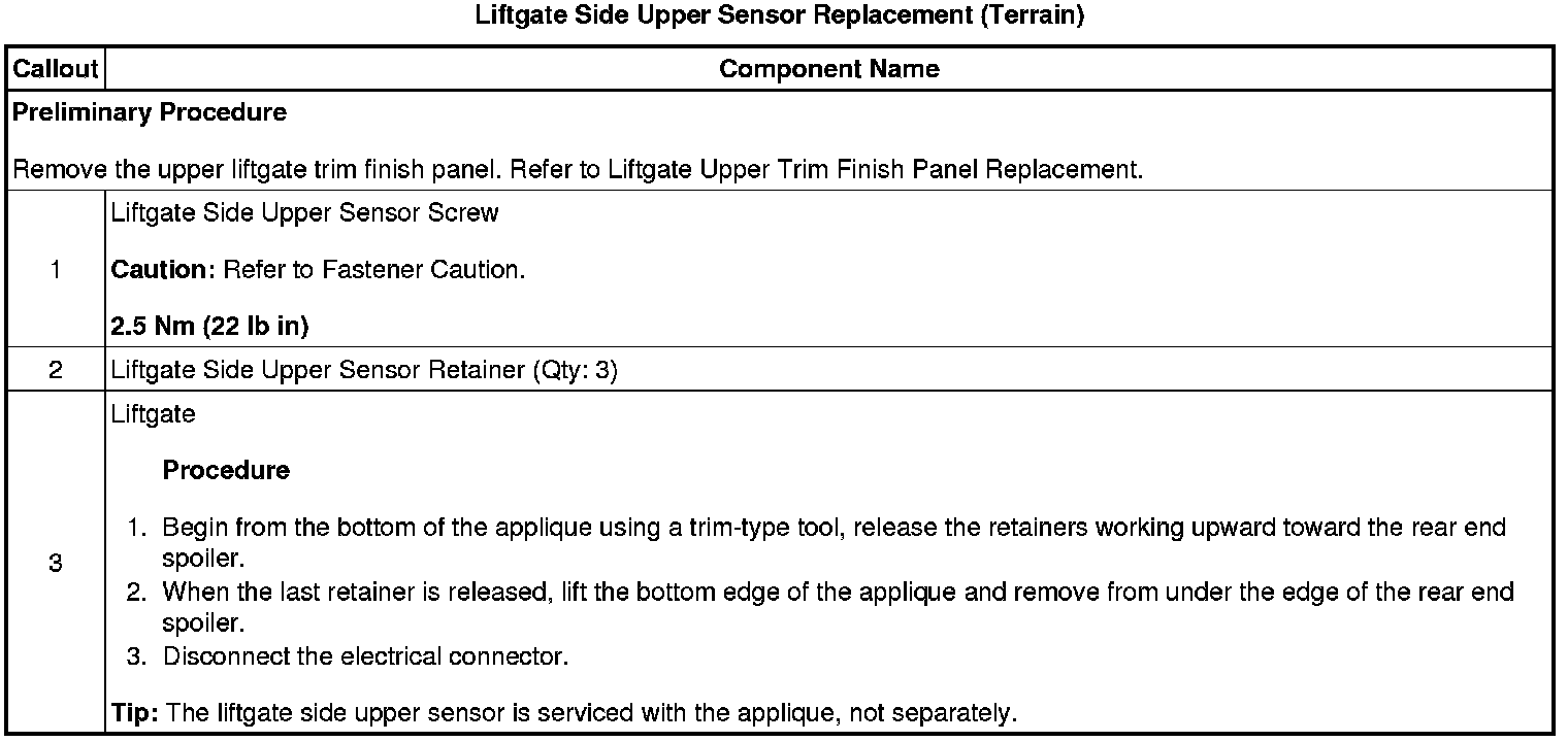 Liftgate Side Upper Sensor Replacement (Terrain)