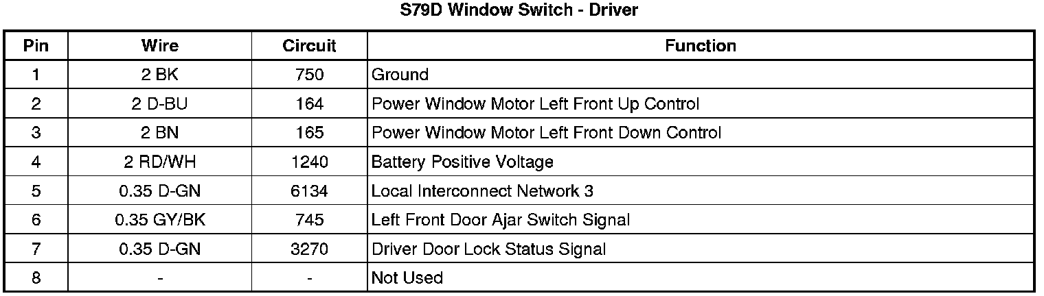 S79D Window Switch - Driver