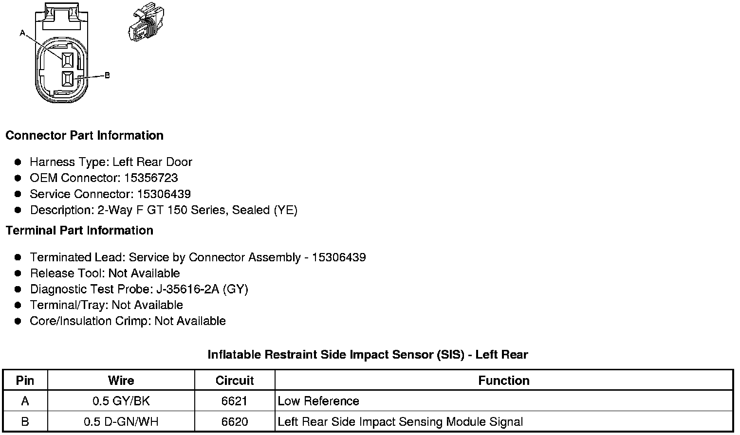 Inflatable Restraint Side Impact Sensor (SIS) - Left Rear