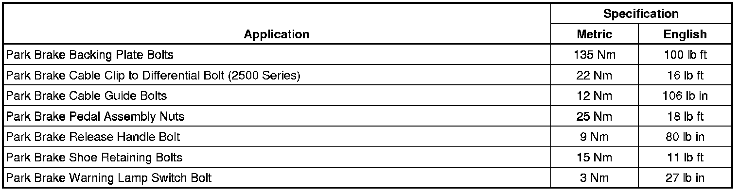 Parking Brake System: Specifications