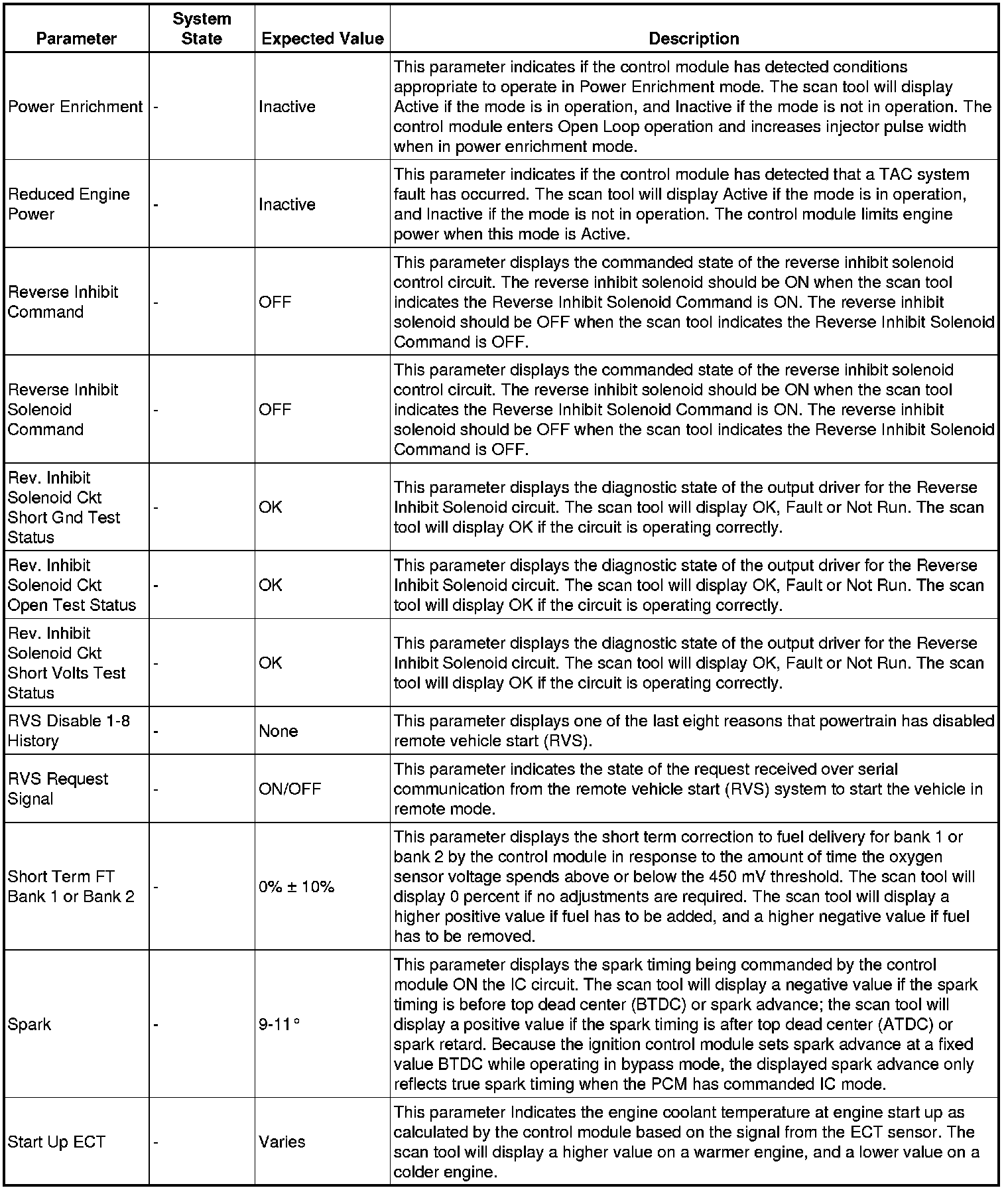 The Engine Control Module Scan Tool Data List contains all engine-related parameters that are available on the scan tool. The list is arranged in alphabetical order. A given parameter may appear in any one of the data lists, and in some cases may appear more than once, or in more than one data list in order to group certain related parameters together.