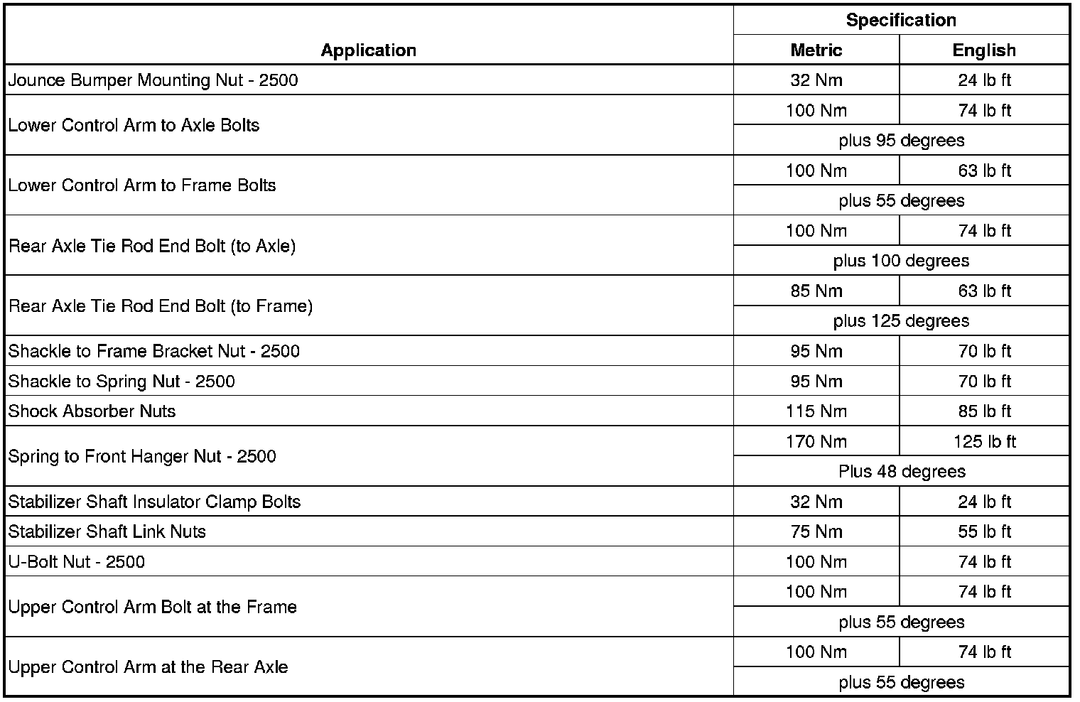 Fastener Tightening Specifications