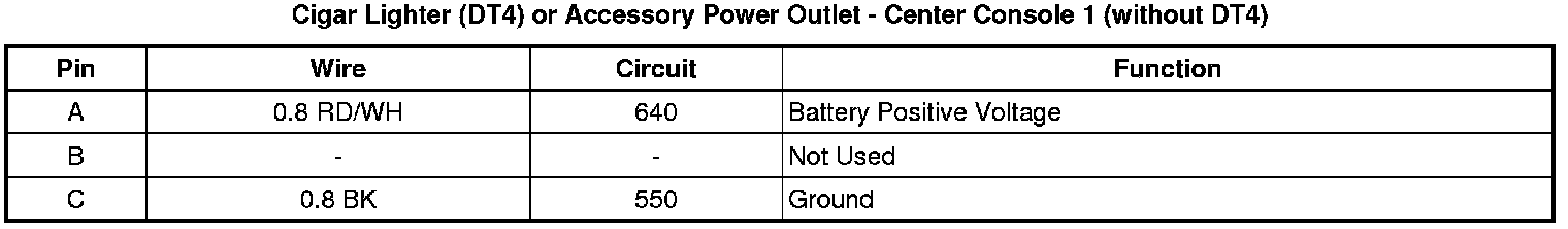 Cigar Lighter (DT4) or Accessory Power Outlet - Center Console 1 (without DT4)