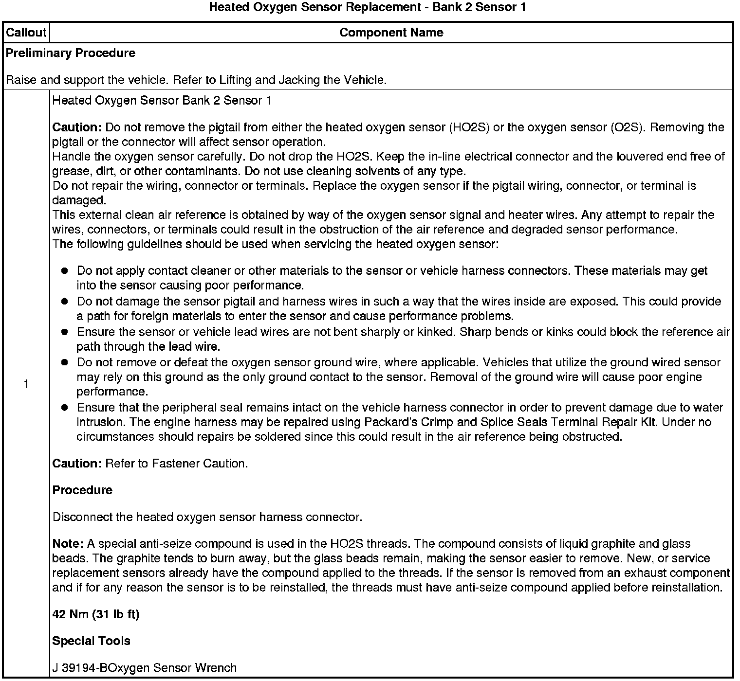 Heated Oxygen Sensor Replacement - Bank 2 Sensor 1