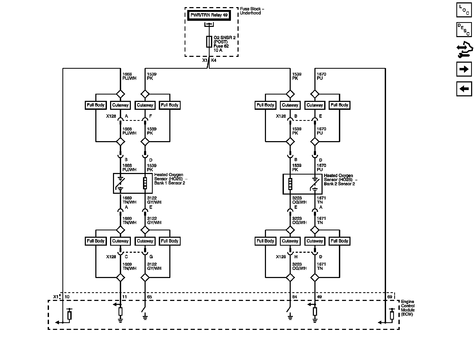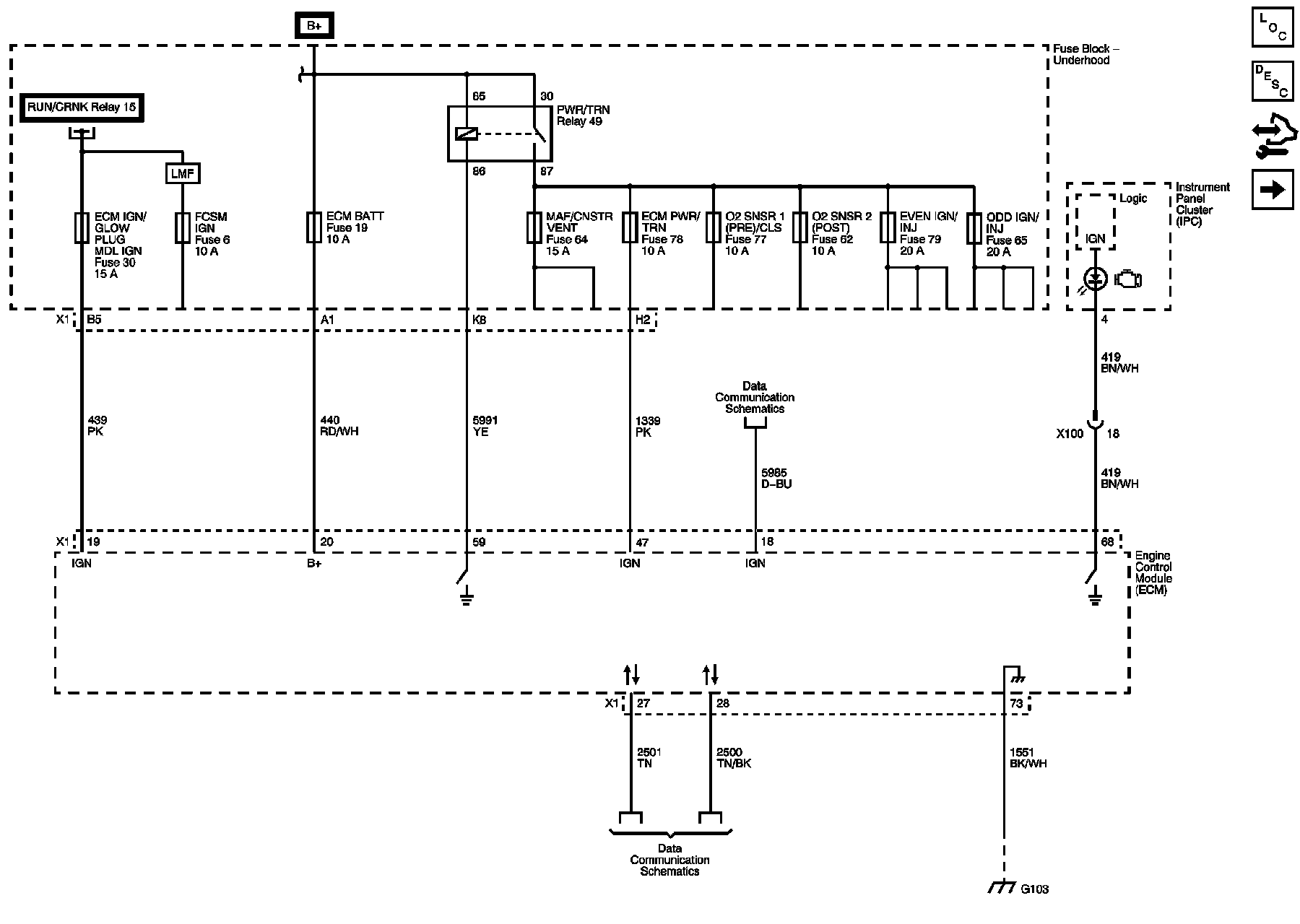 ECM PWR/TRN, MAF/CNSTR VENT, O2 SNSR 1 (PRE)/CLS, and O2 SNSR 2 (POST) Fuses