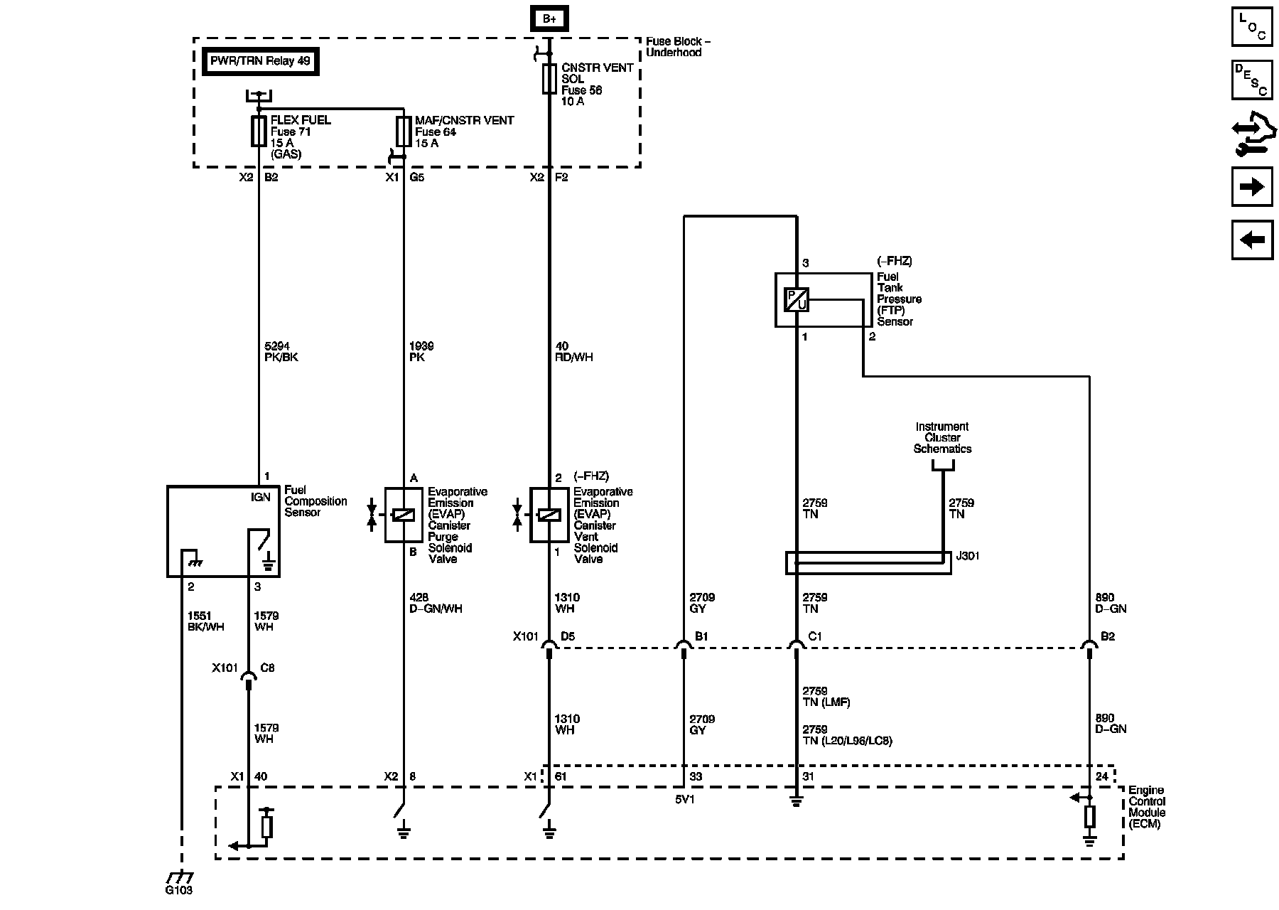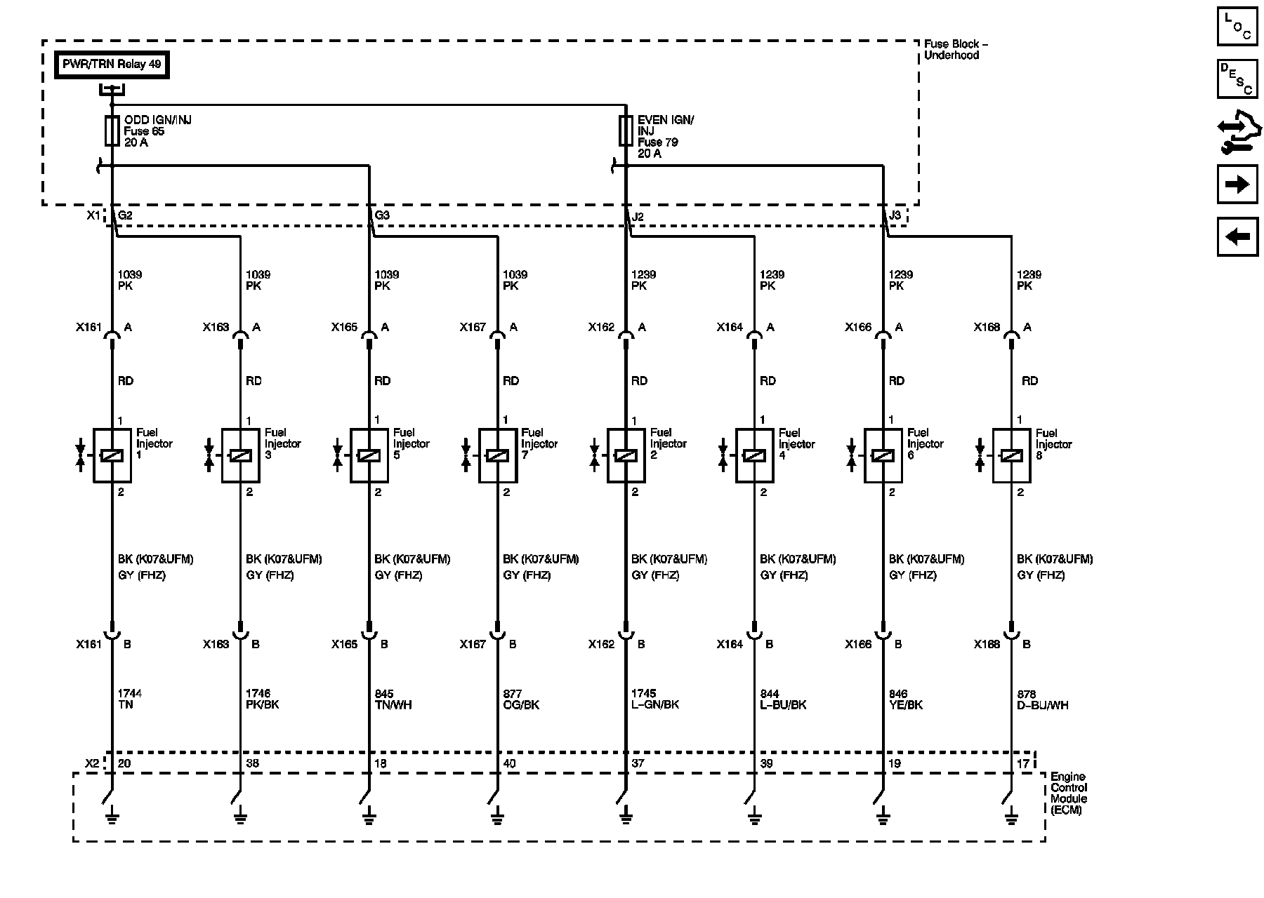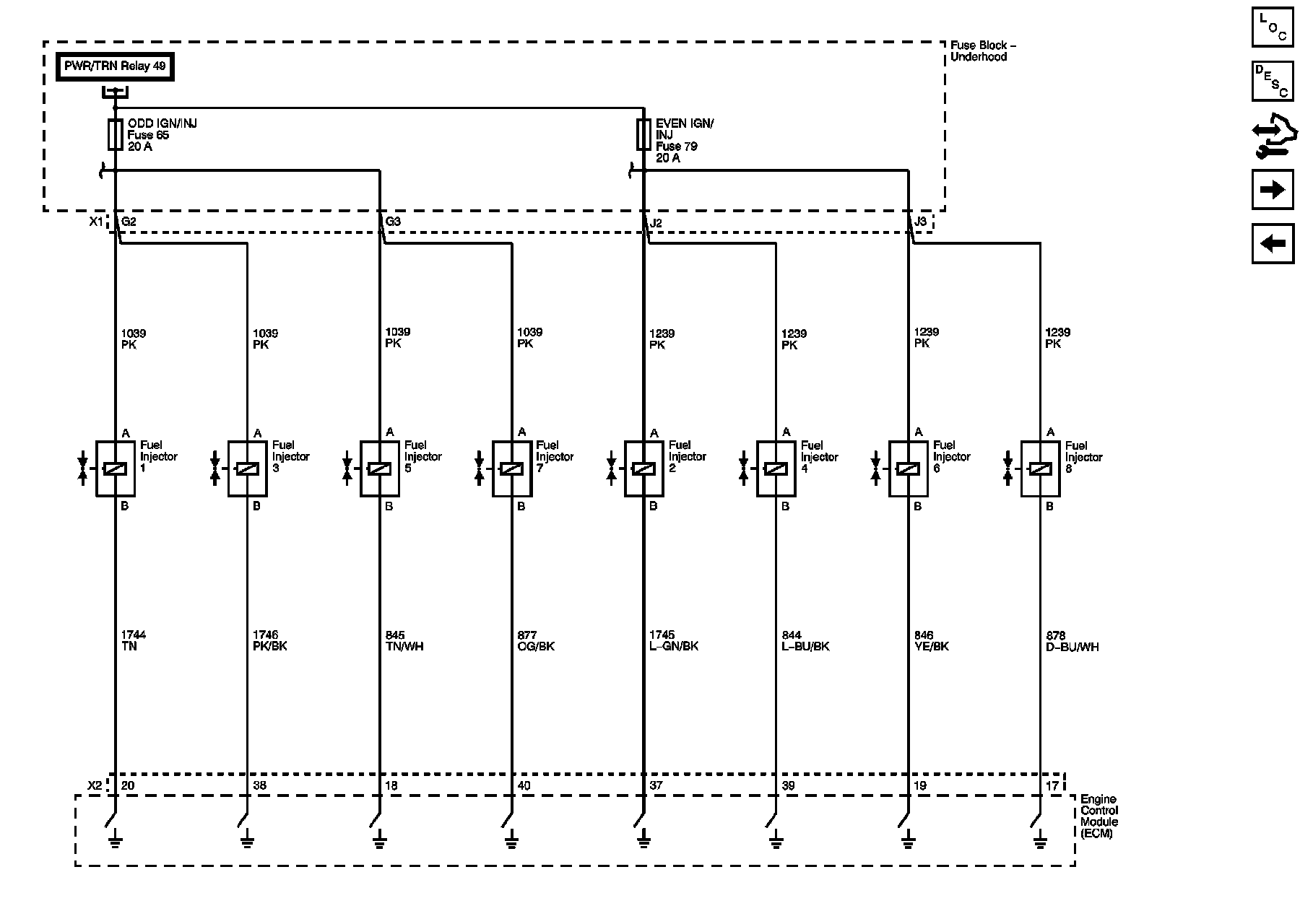 ECM PWR/TRN, EVEN IGN/INJ, FUEL HTR, and V6 FUEL INJ Fuses