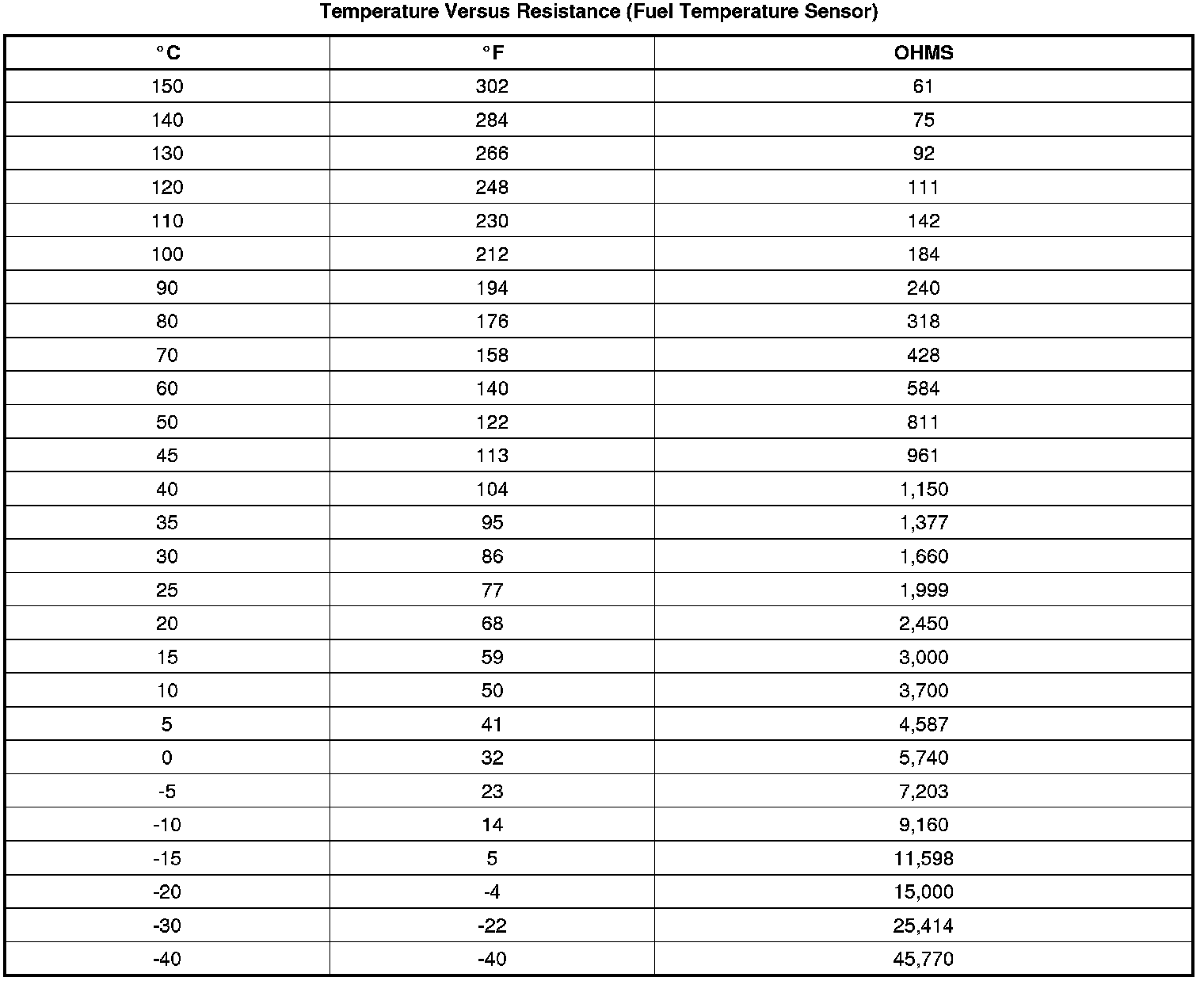 Temperature Versus Resistance (Fuel Temperature Sensor)