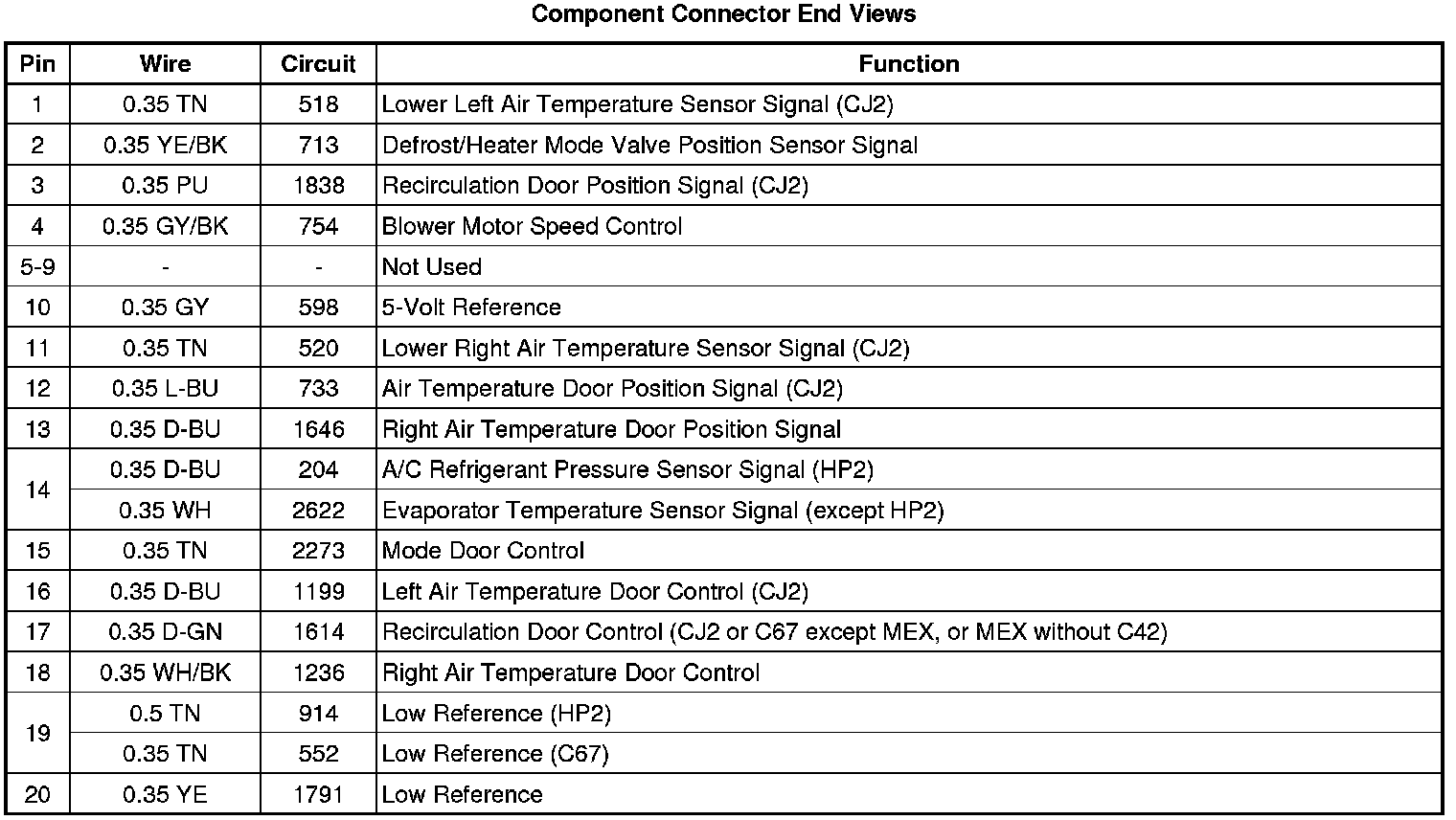 HVAC Control Module X3 (C67, C42, CJ2 or MEX)