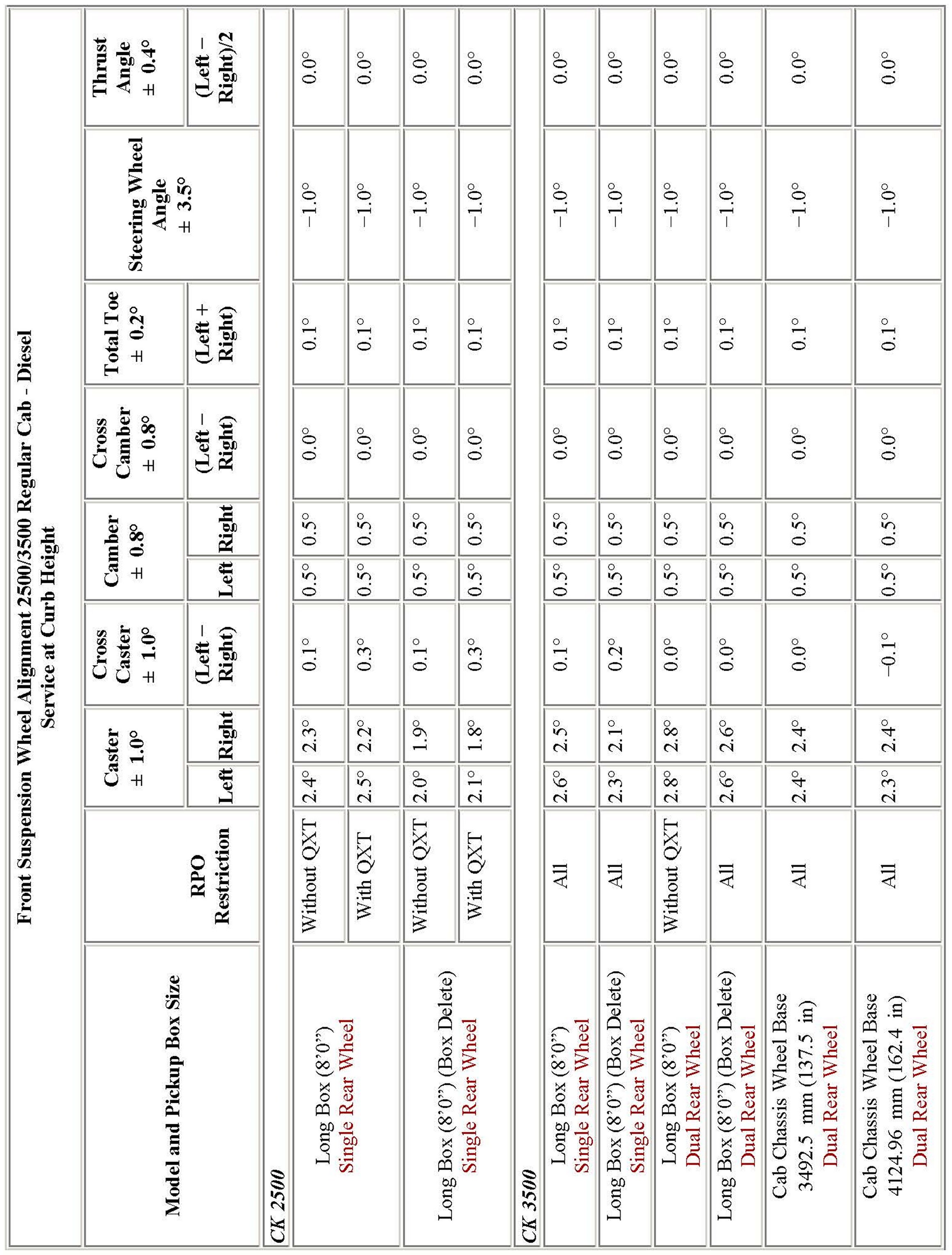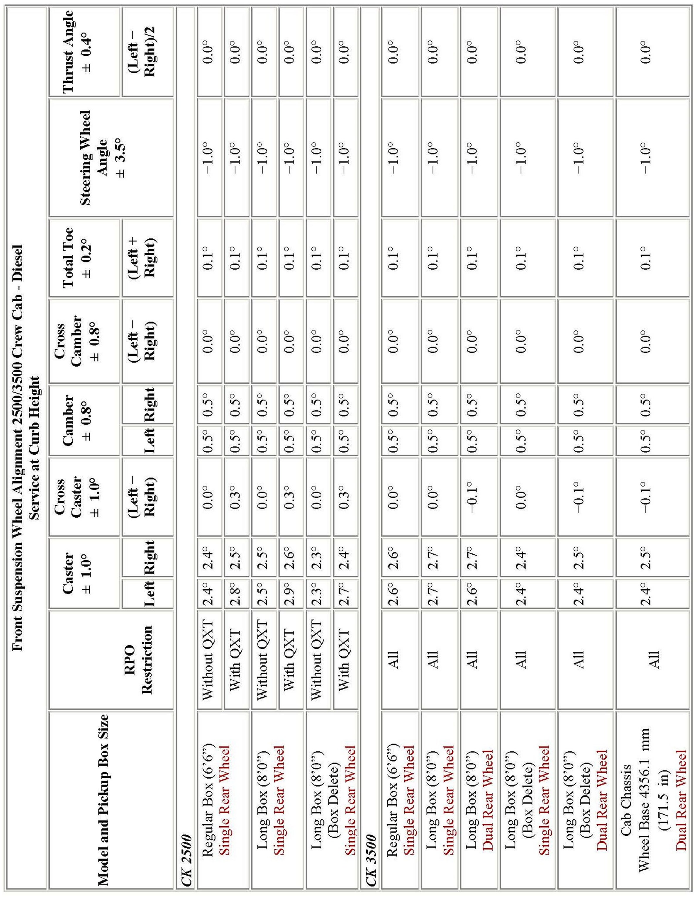 Wheel Alignment Specifications