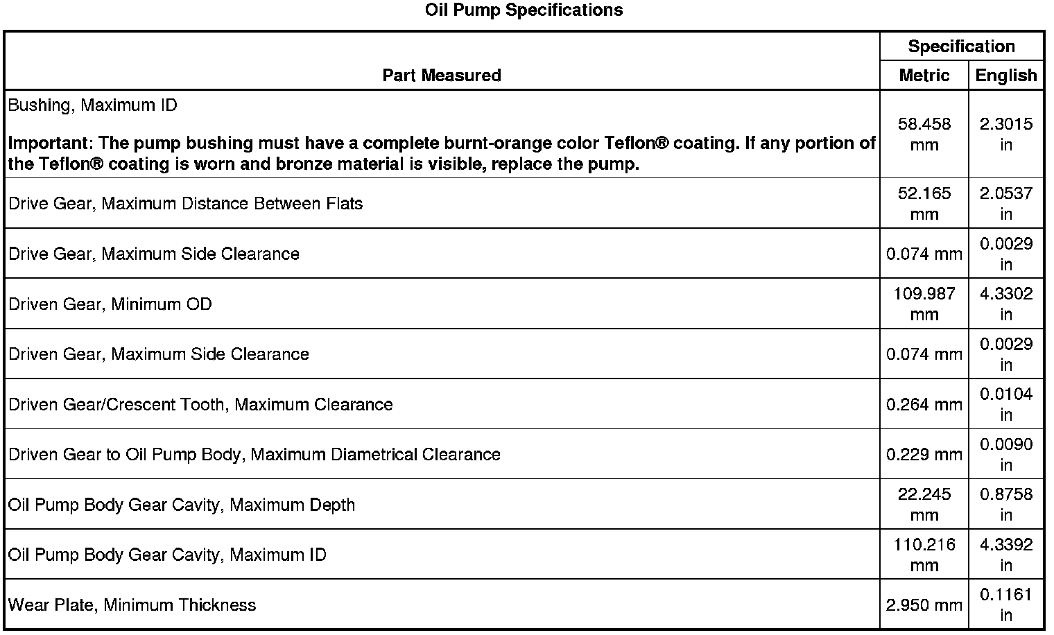 Oil Pump Specifications