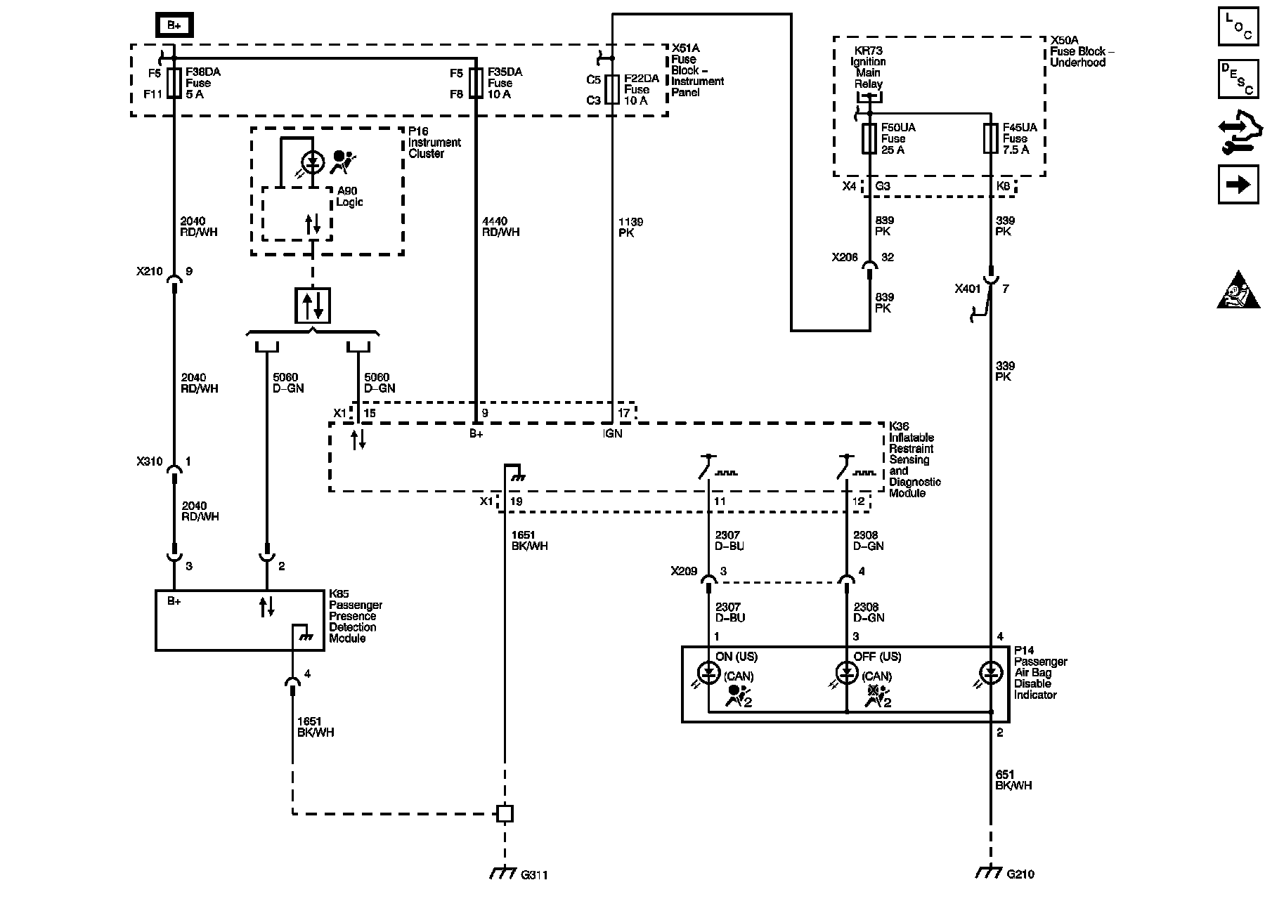 Module Power, Ground, Serial Data, and Front Passenger Presence System