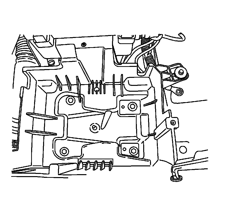 4. Remove the washer bottle. Refer to Windshield Washer Solvent Container Replacement (Terrain) Windshield Washer Solvent Container Replacement (Terrain)Windshield Washer Solvent Container Replacement (Equinox) Windshield Washer Solvent Container Replacement (Equinox).