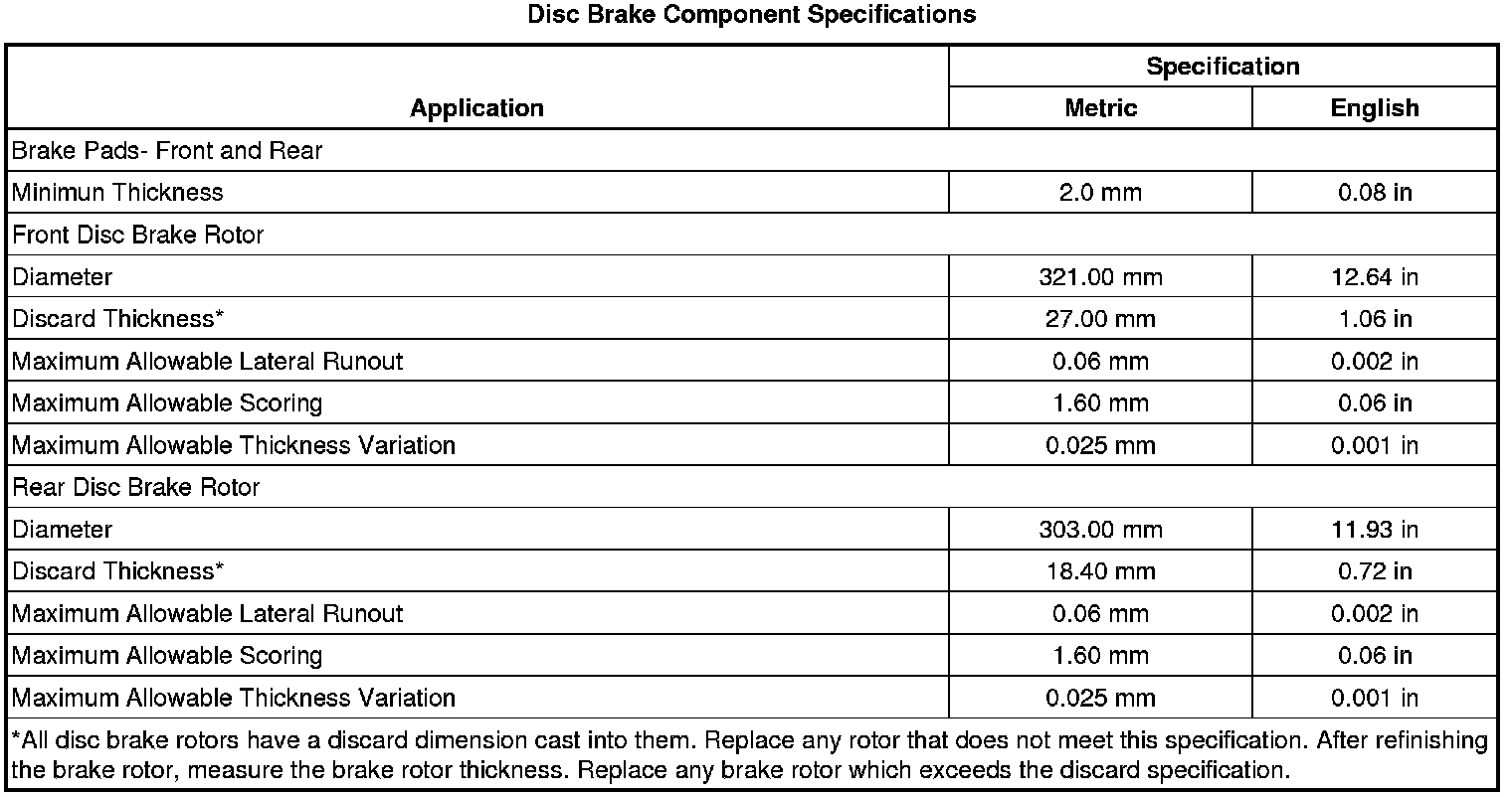 Disc Brake Component Specifications