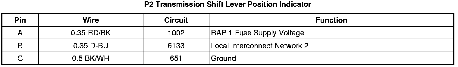 P2 Transmission Shift Lever Position Indicator