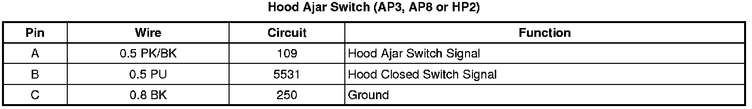 Hood Ajar Switch (AP3, AP8 or HP2)