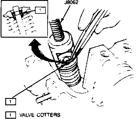 3. Release valve lifter tool and remove valve spring retainers and valve springs.