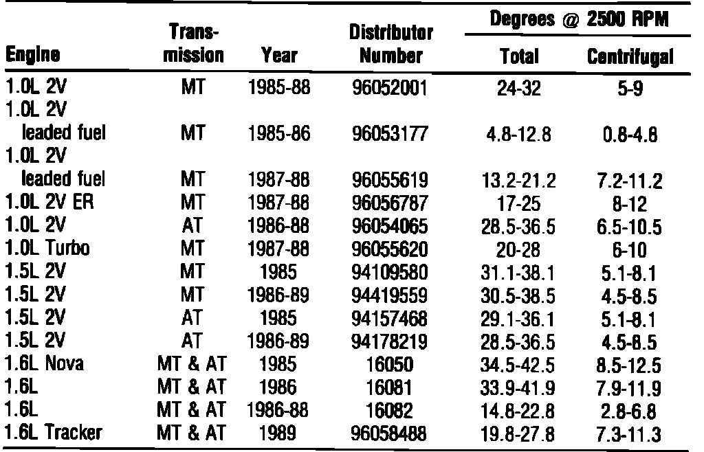 DISTRIBUTOR TIMING ADVANCE: