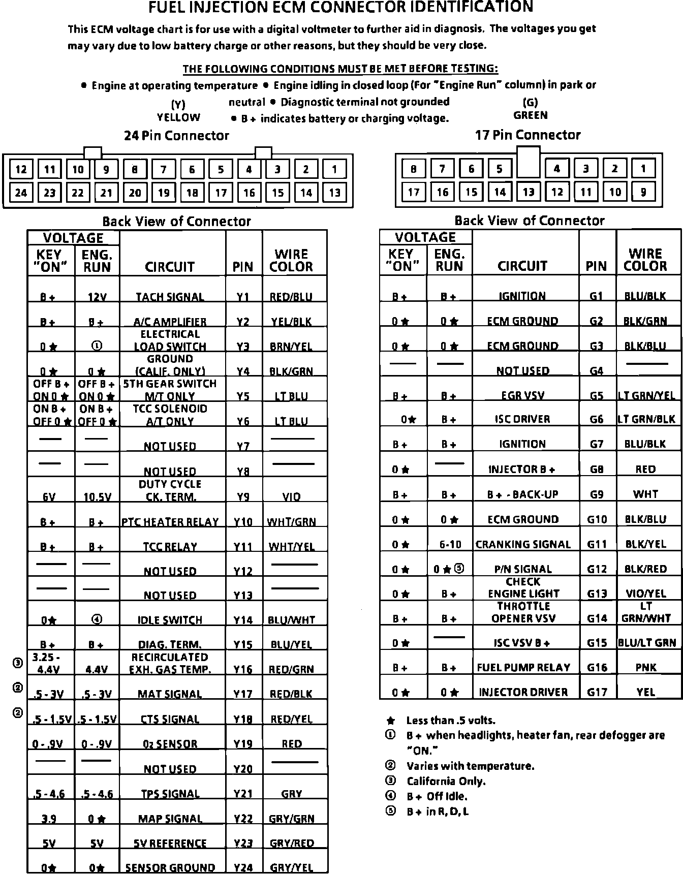 Use the above ECM TERMINAL END VIEW chart to check ECM Pin voltage.