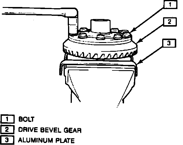 6. Install bevel gear to differential case and torque bolts to 70 ft. lbs. Use GM Loctite thread locking kit (part No. 1052624) for bevel gear bolts.