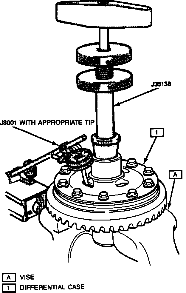 6. Rotate differential assembly using flange holding tool No. J8614-01, or equivalent.