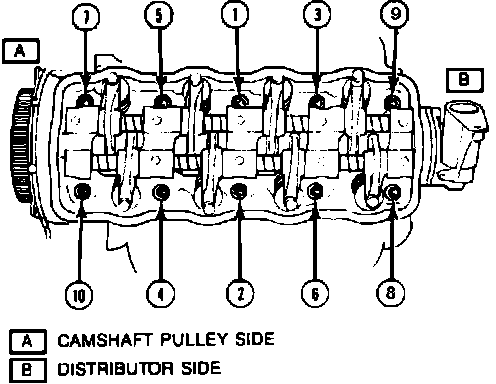 b. Lightly oil cylinder head bolts with oil and torque the cylinder bolts to specification in sequence shown in Fig. 13.