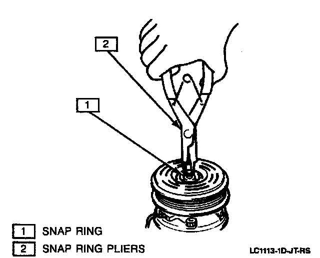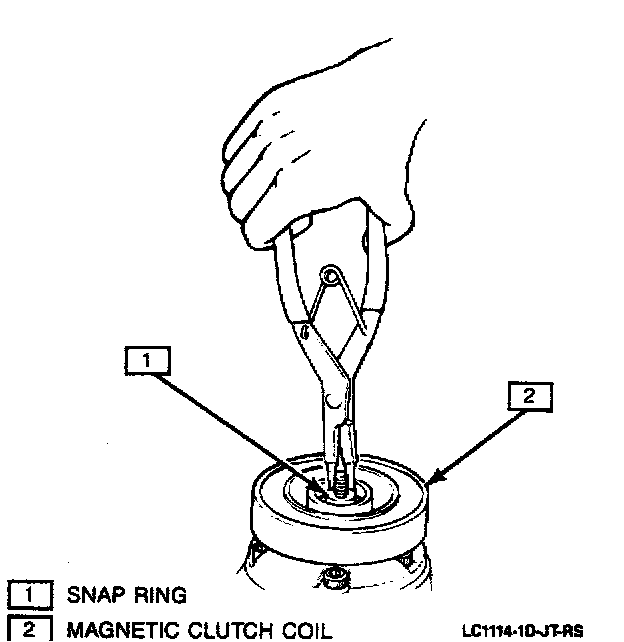 The following instructions for removal of the magnetic clutch were written (and the art drawn) as a bench procedure, with the compressor assembly removed from the vehicle.Remove or Disconnect