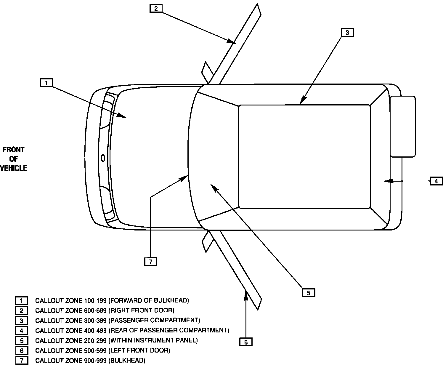 All connectors, grounds, and splices are labeled with a locational designation number. These numbers will help you locate the connector, ground, or splice in the vehicle. For example, connector C6O5 will be located somewhere in the right front door. For further information regarding these locations and labels, refer to the "Vehicle Zoning Callout Chart".