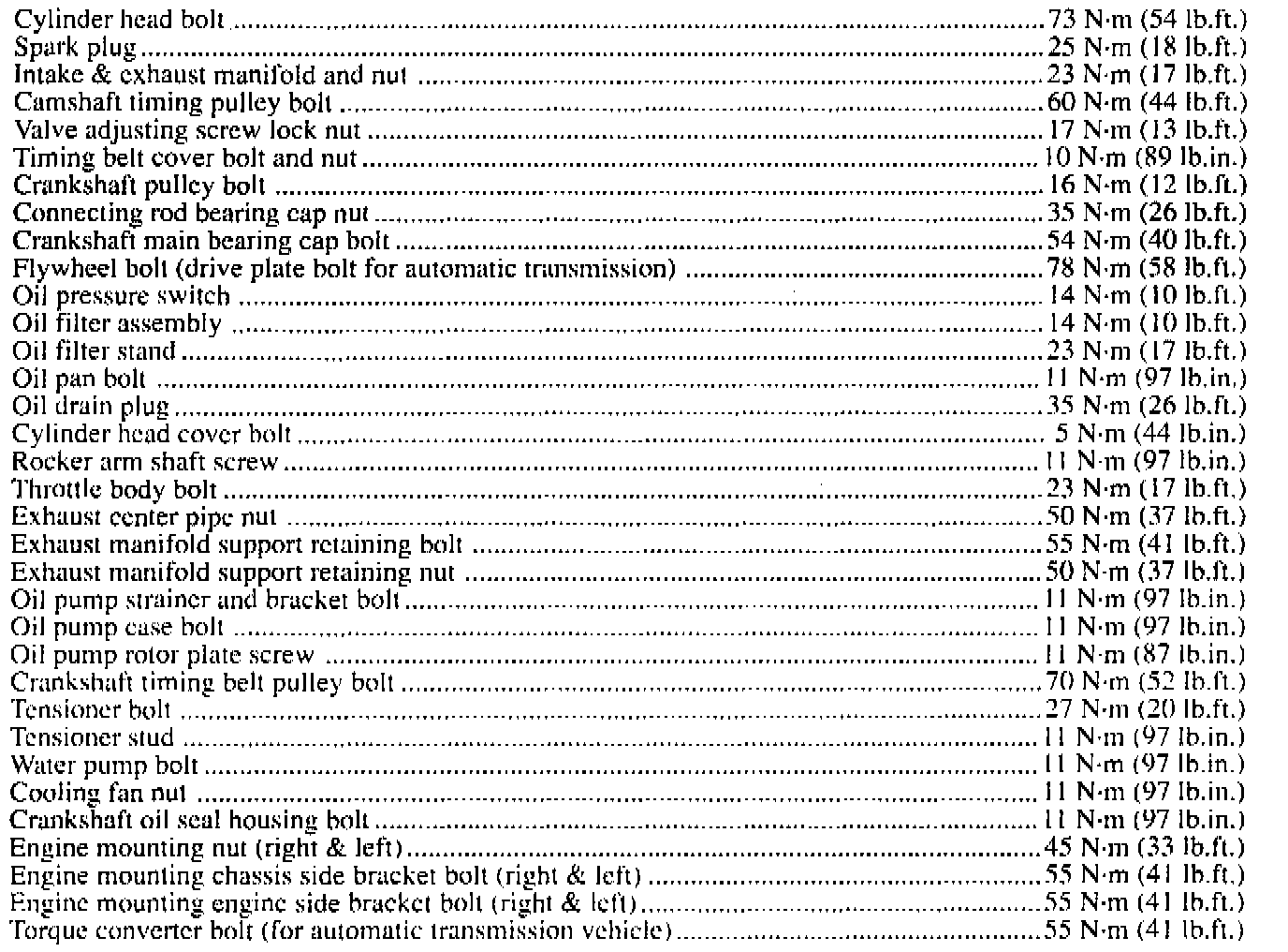 Torque Specifications: