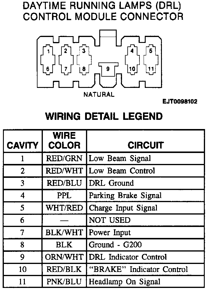 Daytime Running Lamps (DRL) Control Module Connector: