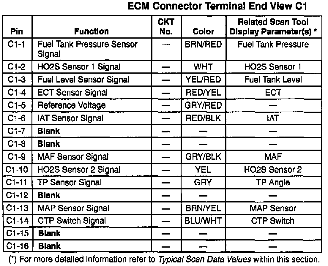 Engine Control Module (ECM) Connector C1: