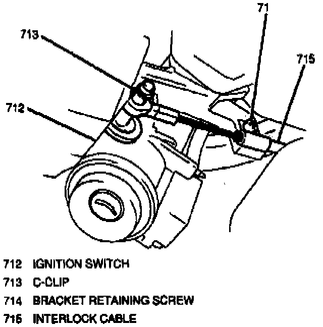 3. Secure cable at ignition switch with bracket retaining screw and C-clip.