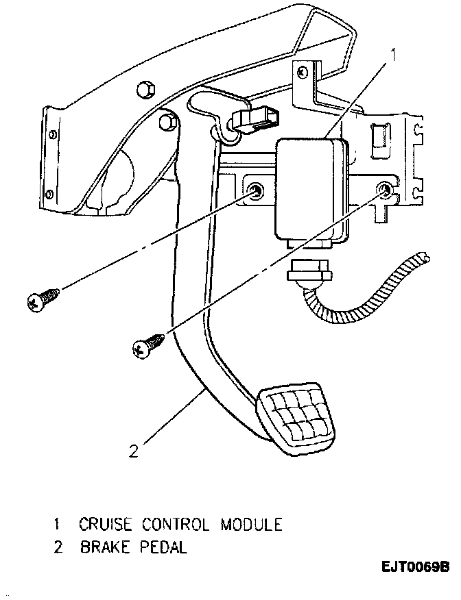 2. Electronic Brake Control Module (EBCM) harness guide clip from bracket near cruise control module (if equipped with ABS).