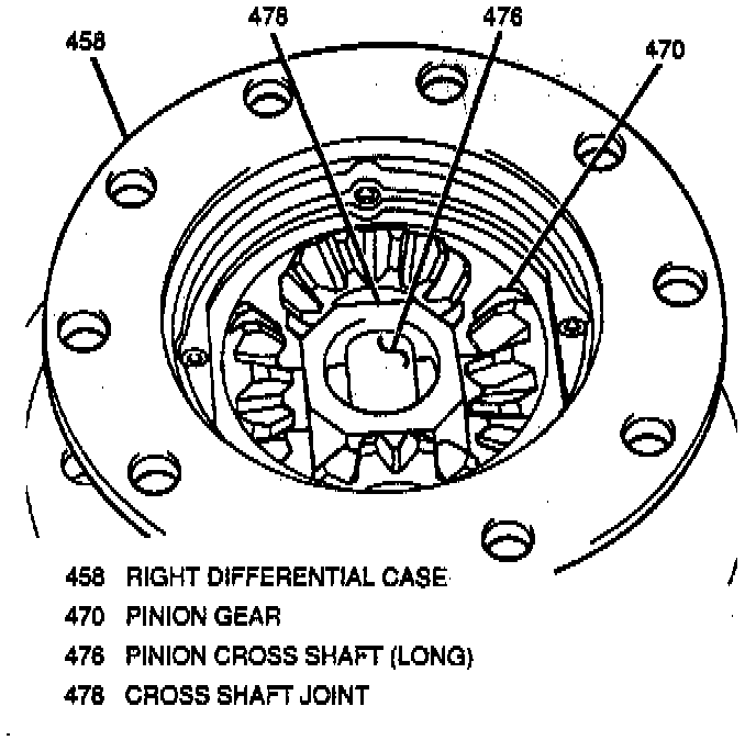 3. Right side gear and washers, differential pinion gears and washers, cross shafts and pinion cross shaft joint in right differential case.