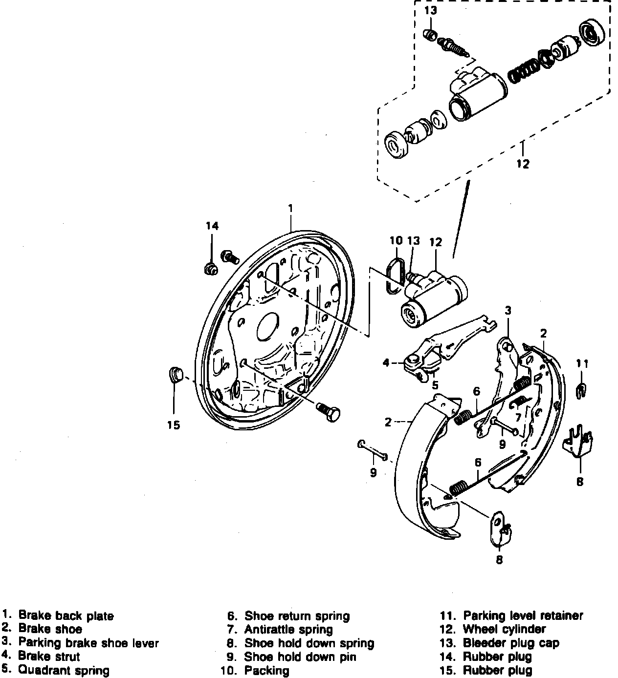 8. Depress brake pedal several times to obtain proper drum to shoe clearance and adjust parking brake.