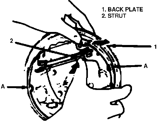 3. To minimize dimension `A-A,' Fig. 4, push strut towards backing plate while pushing out on shoe as shown.