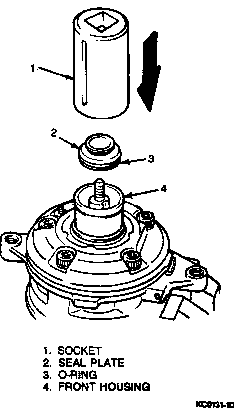 b. Lubricate new O-ring with compressor oil. Install the O-ring in the rear cylinder.