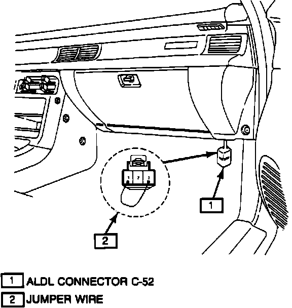 3. Connect a fused jumper wire between the two outermost terminals of the ALDL connector C-52 (located under the RH instrument panel).