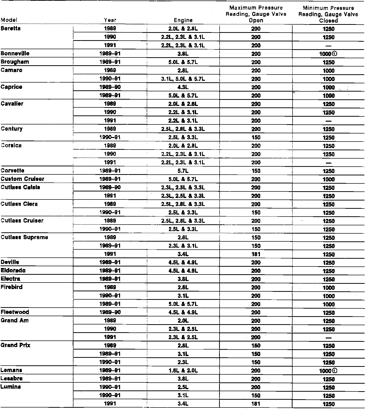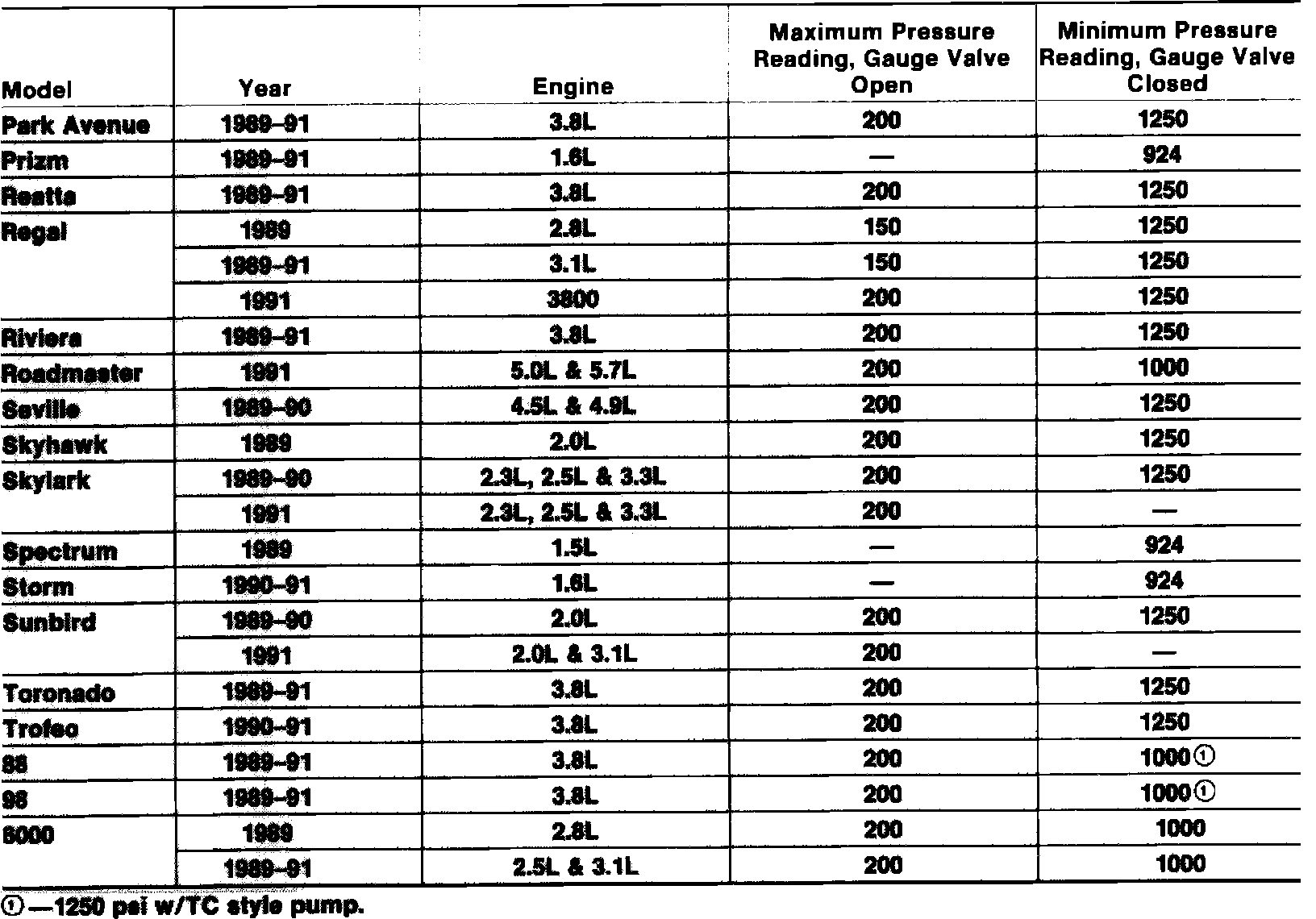 Power Steering Pressure Specifications: