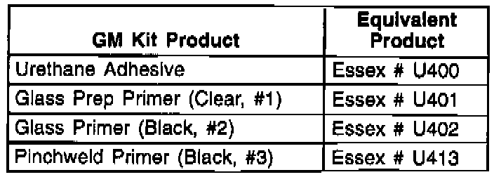 Other manufacturers of Urethane Adhesive that have documented their ability to meet or exceed General Motors' Specification # 3651M are also considered to be equivalent to GM Kit P/N 12346284.