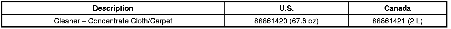For difficult to clean materials or when cleaning a large area, the best results will be achieved when using an extractor machine and concentrate. General Motors offers the Ruby Extractor (P/N 627-CC-3000AU) through GM Tools and Equipment 1-800-GM-TOOLS, and has recently released a concentrate for use with the extractor machine. In Canada, the Ruby Extractor machine is available from GMCCA (P/N 88861441).