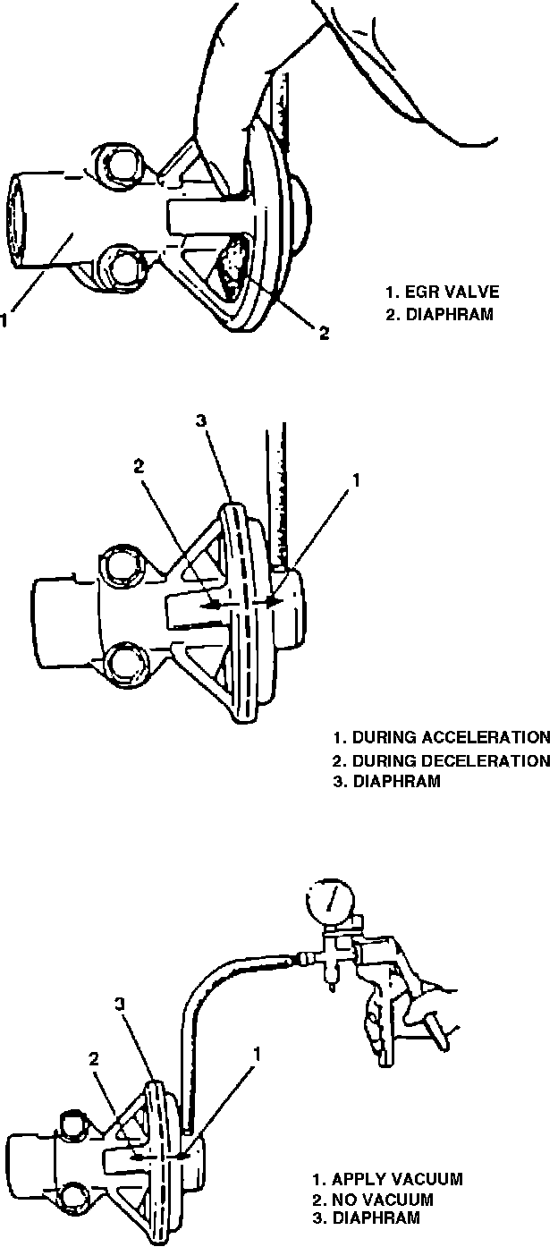 2. Place finger on EGR valve diaphragm and accelerate engine, the diaphragm should move.