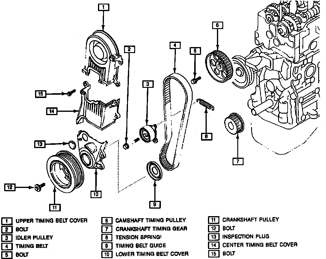 5. Disconnect engine wiring harness from upper timing belt cover.