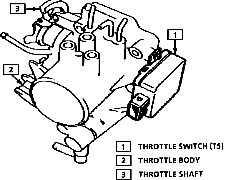 The Throttle Switch (TS) consists of 2-contact points (idle switch and wide open switch) and is connected to the throttle valve shaft. The throttle opening in the idle state is detected by means of the idle switch, and the wide open state is detected by the wide open switch.