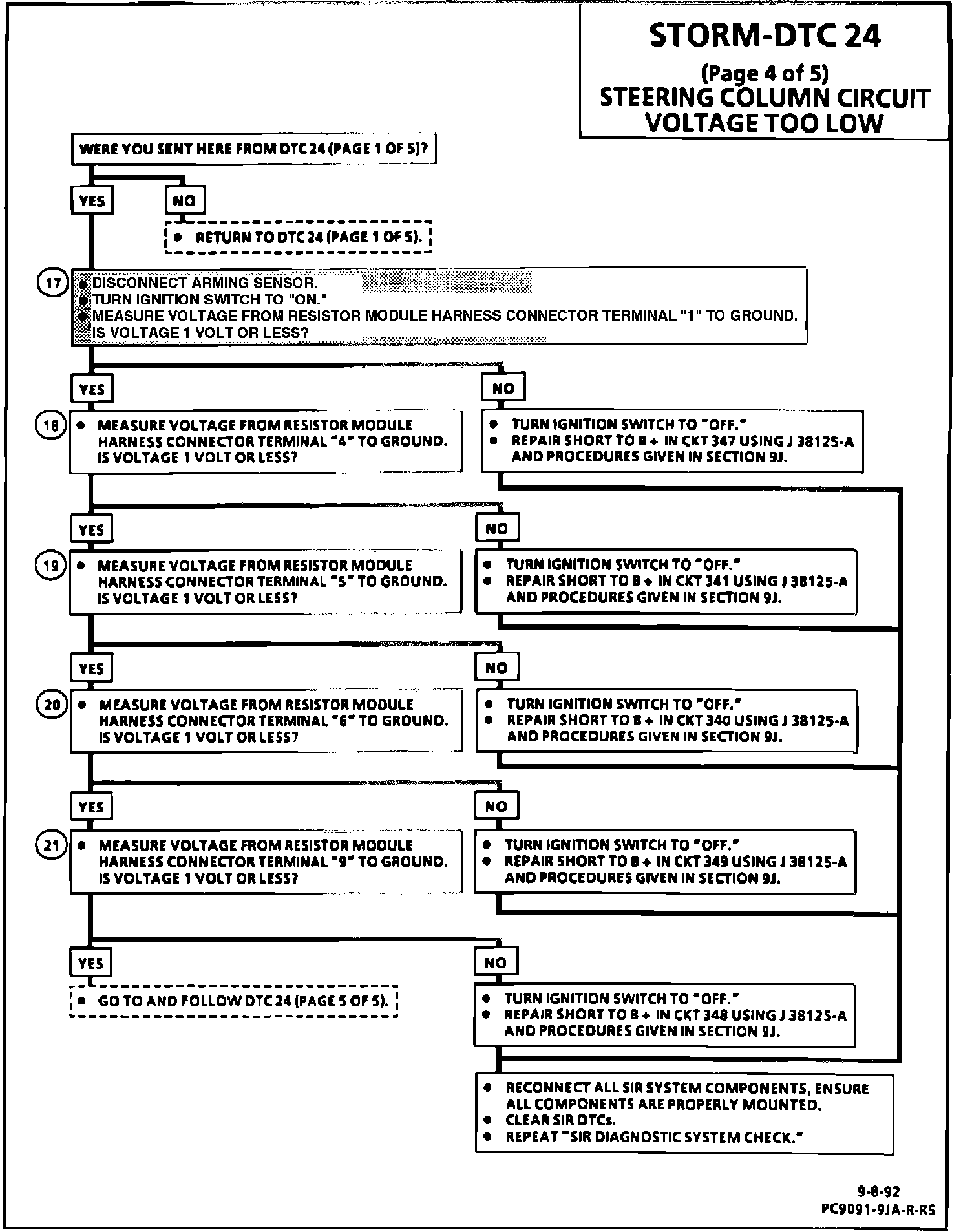 18. This test checks for a short to B + in CKT 341.