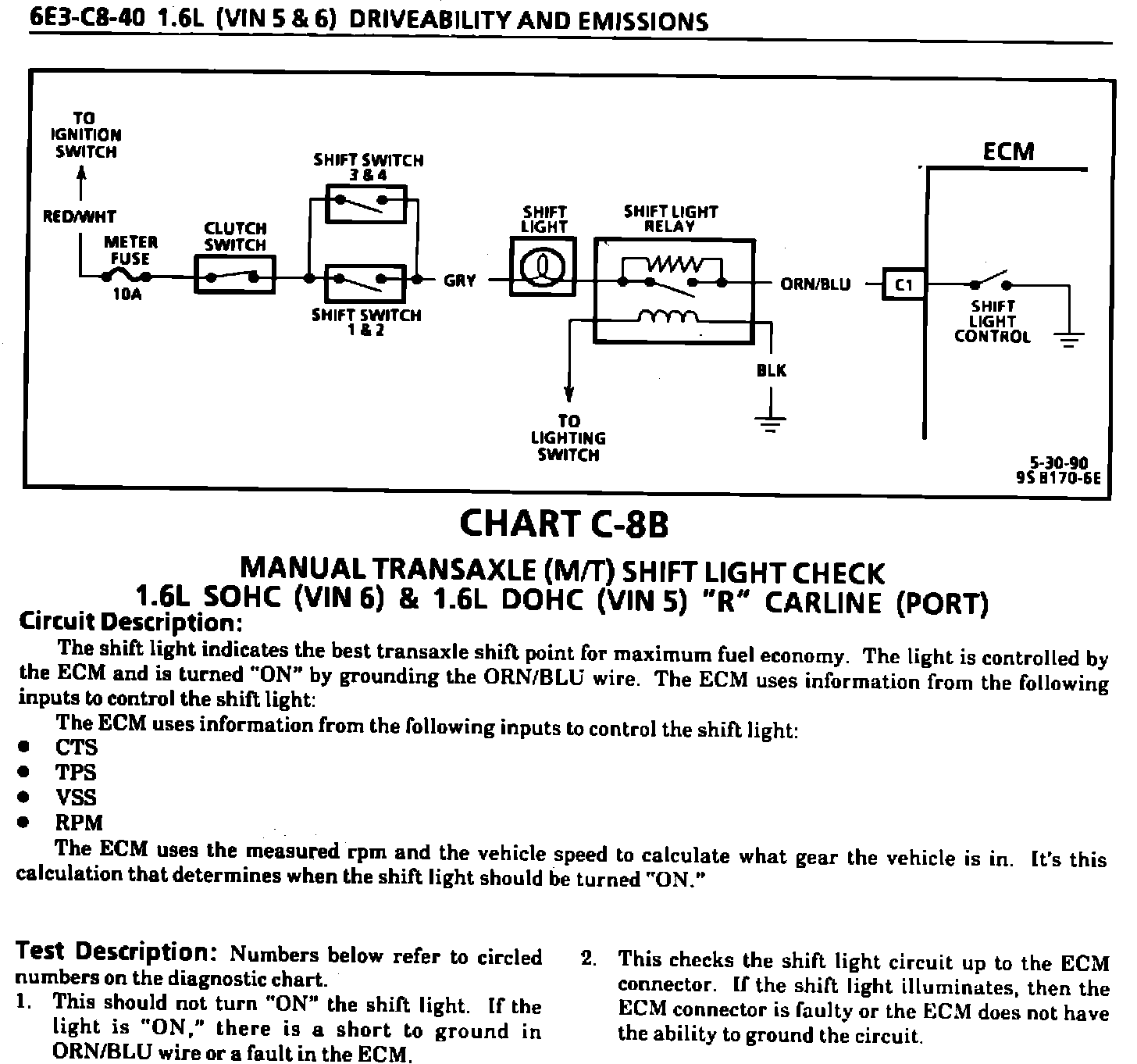 This bulletin serves to revise the Chart C-8B facing page on Page 6E3-C8-40 in "Driveability And Emissions" Section 6E3 in the 1990 Geo Storm 1.6L (VIN 5 and 6) "R" Carline (Port) Service Manual.