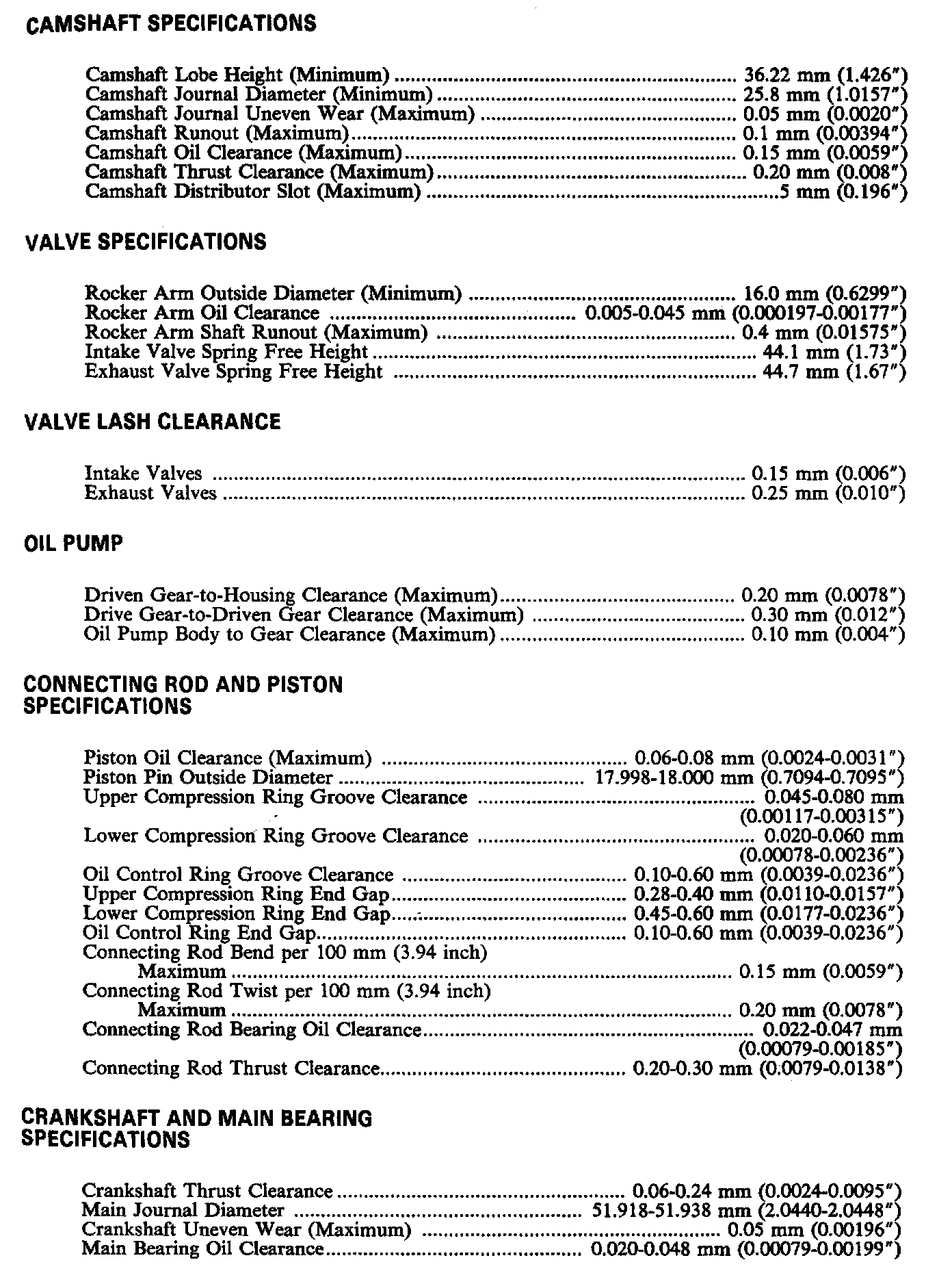 Engine Specifications: