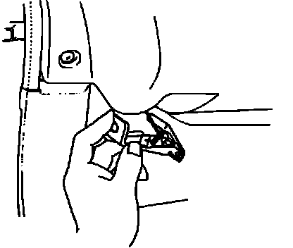 5. Remove two hood release retaining screws, then disconnect hood release cable, Fig. 206.