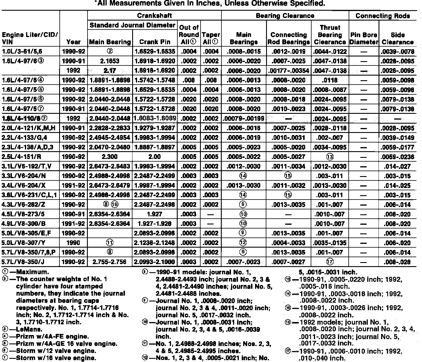 Crankshaft, Bearings & Connecting Rods Specifications: